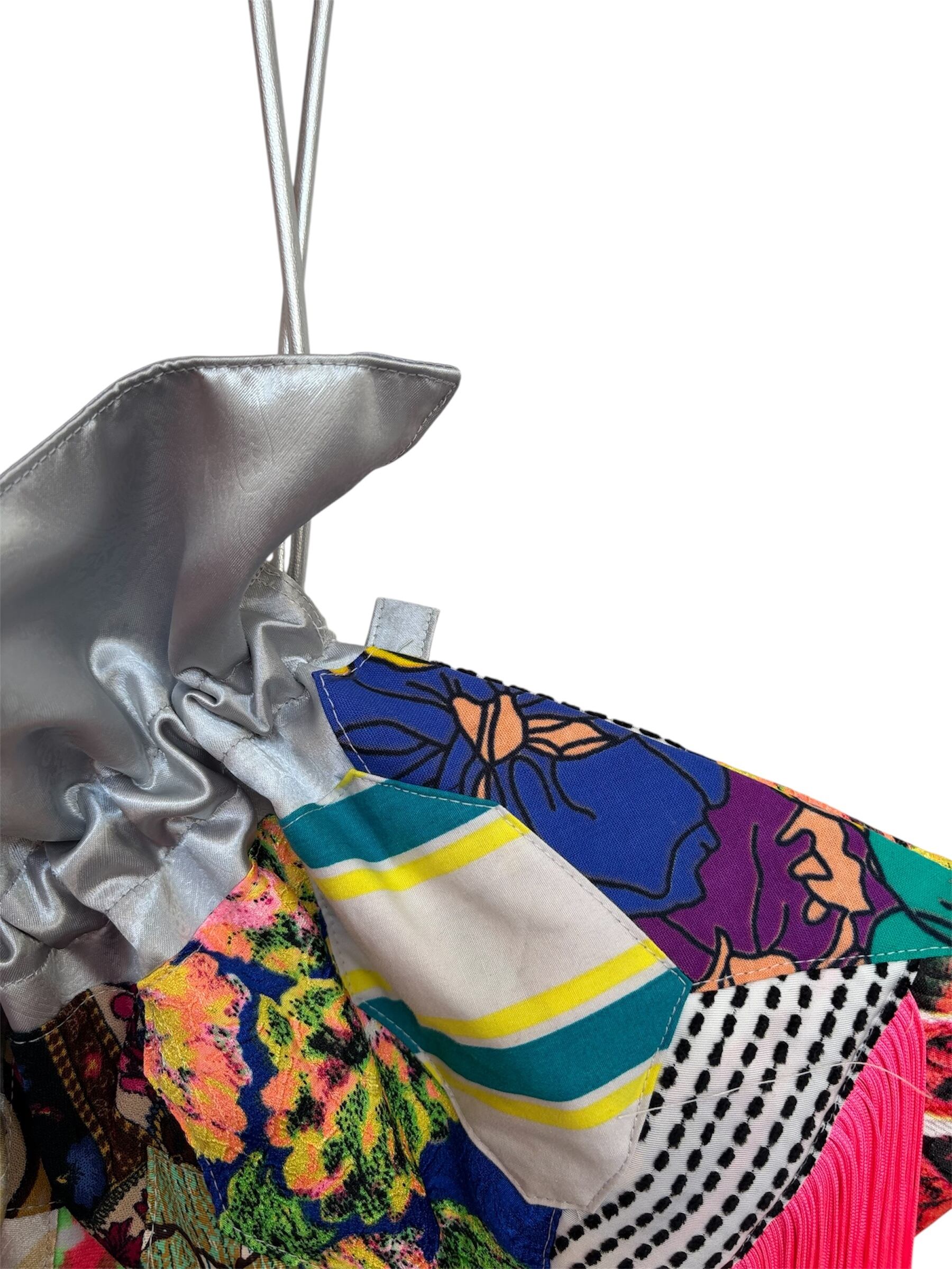 バッグの入り口のサテン生地 裏地、フリンジ、紐は新品を使用しています。