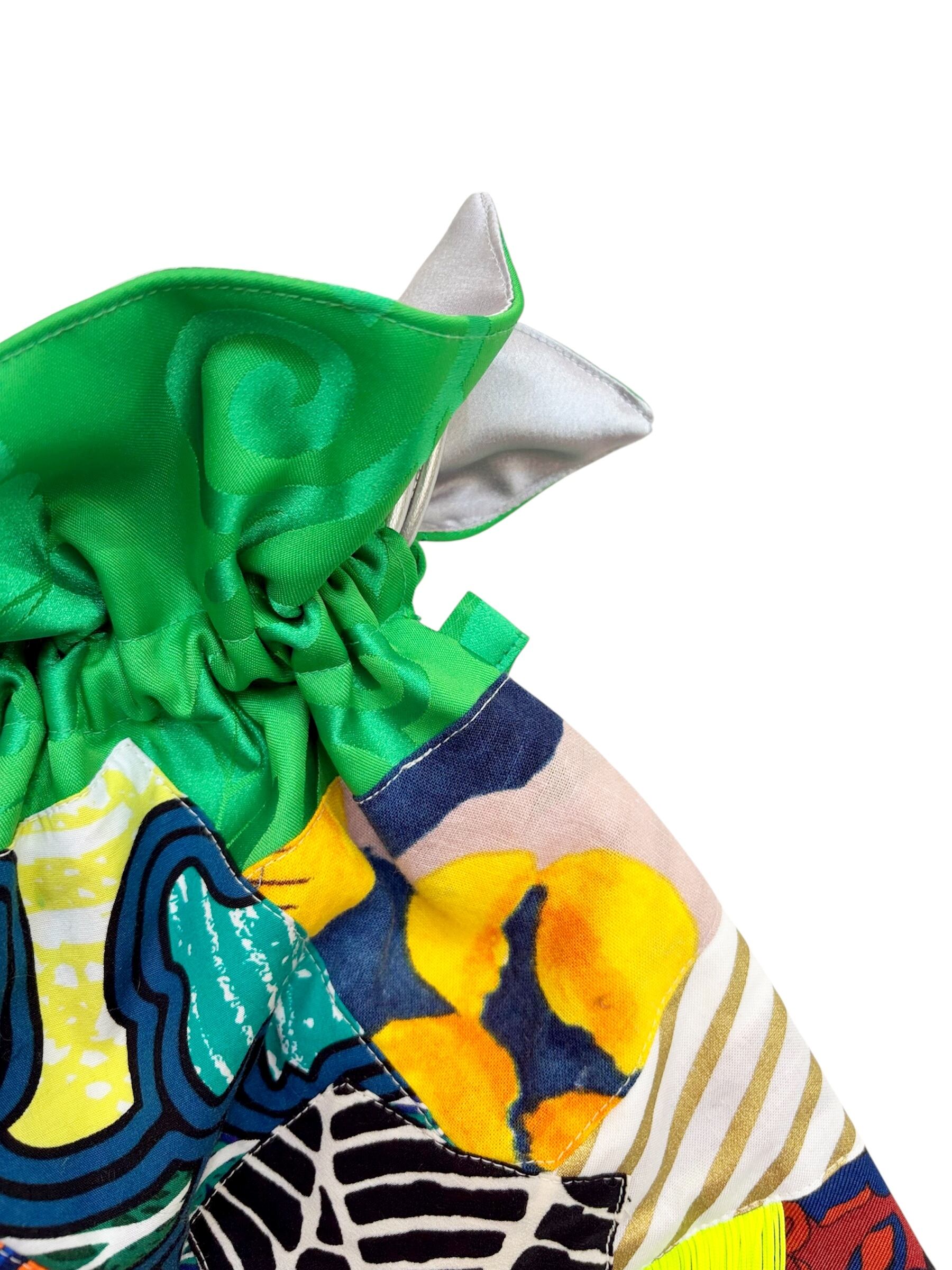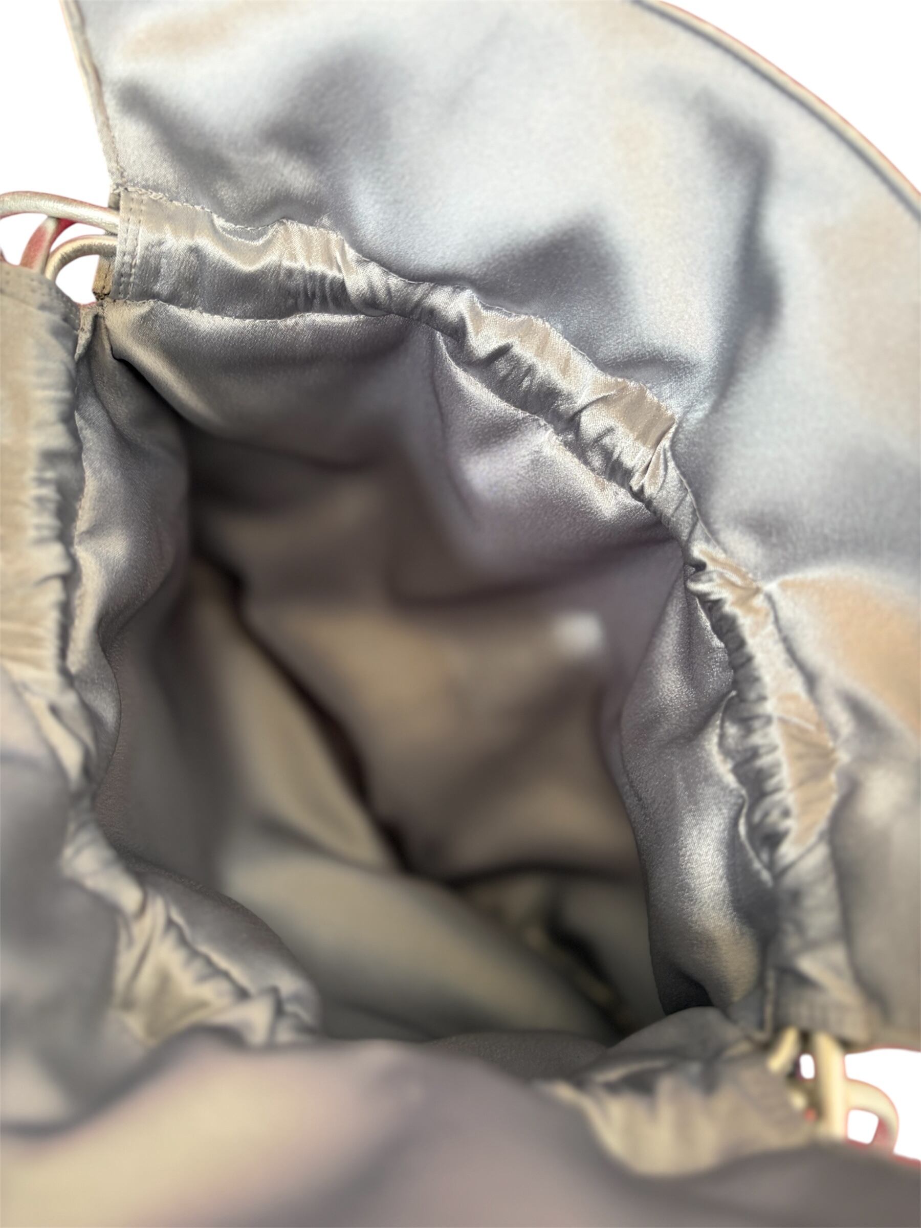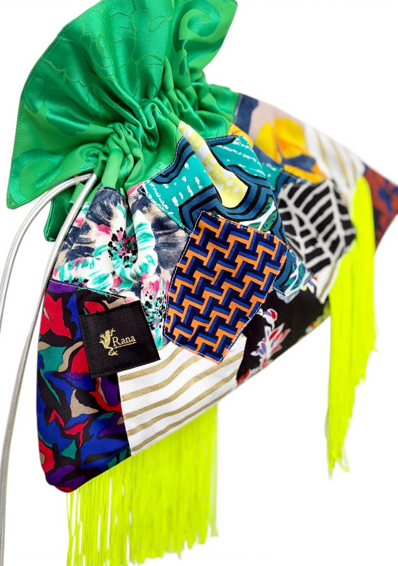 バッグの入り口のサテン生地 裏地、フリンジ、紐は新品を使用しています。
