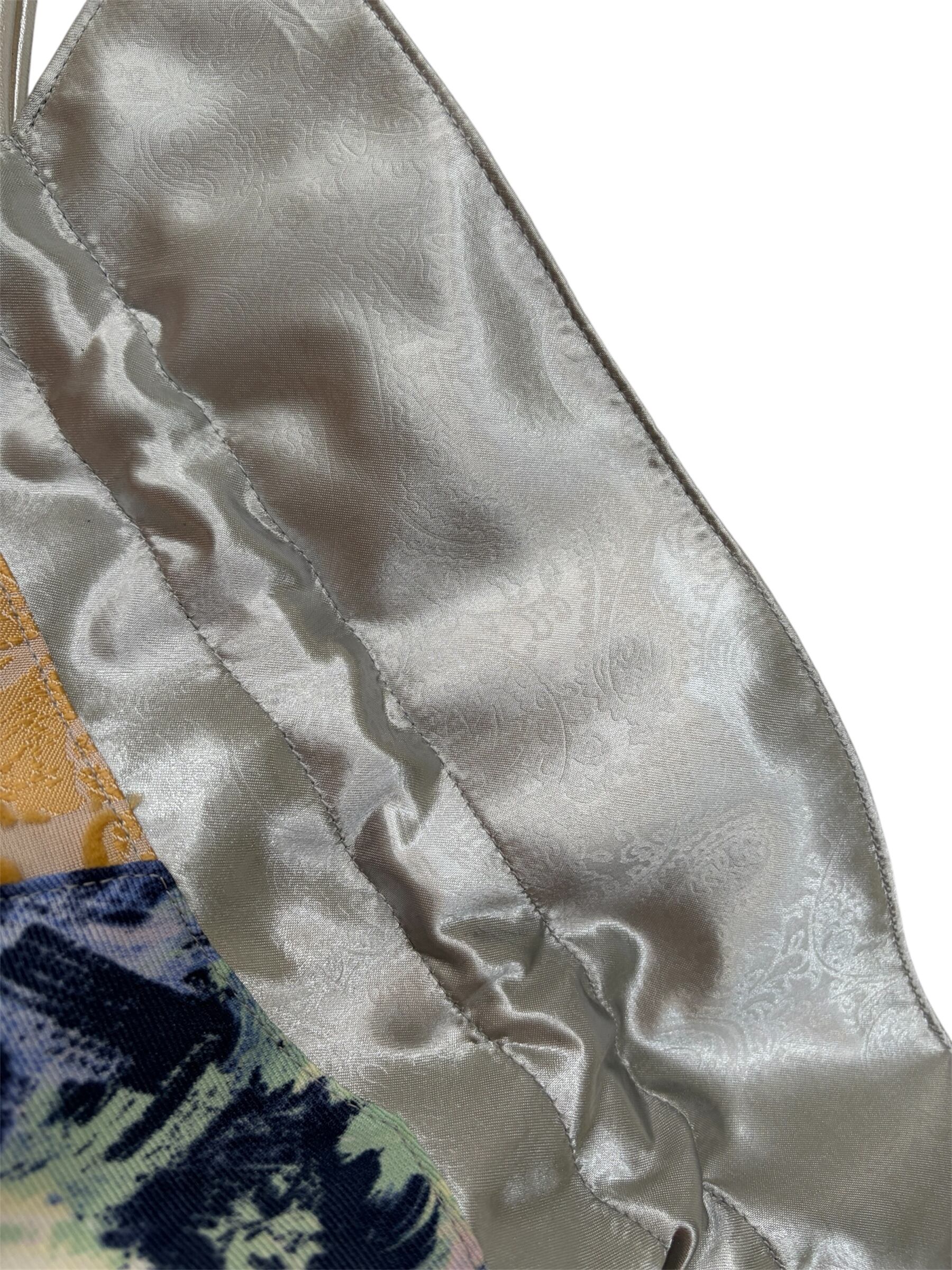 バッグの入り口のサテン生地 裏地、フリンジ、紐は新品を使用しています。