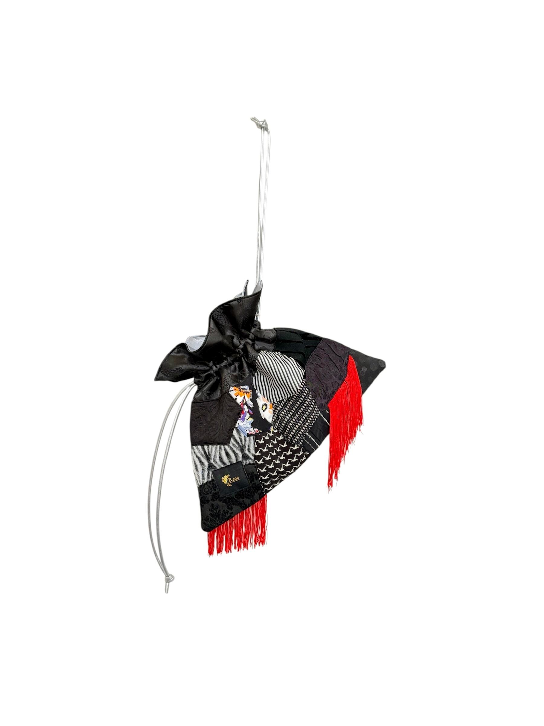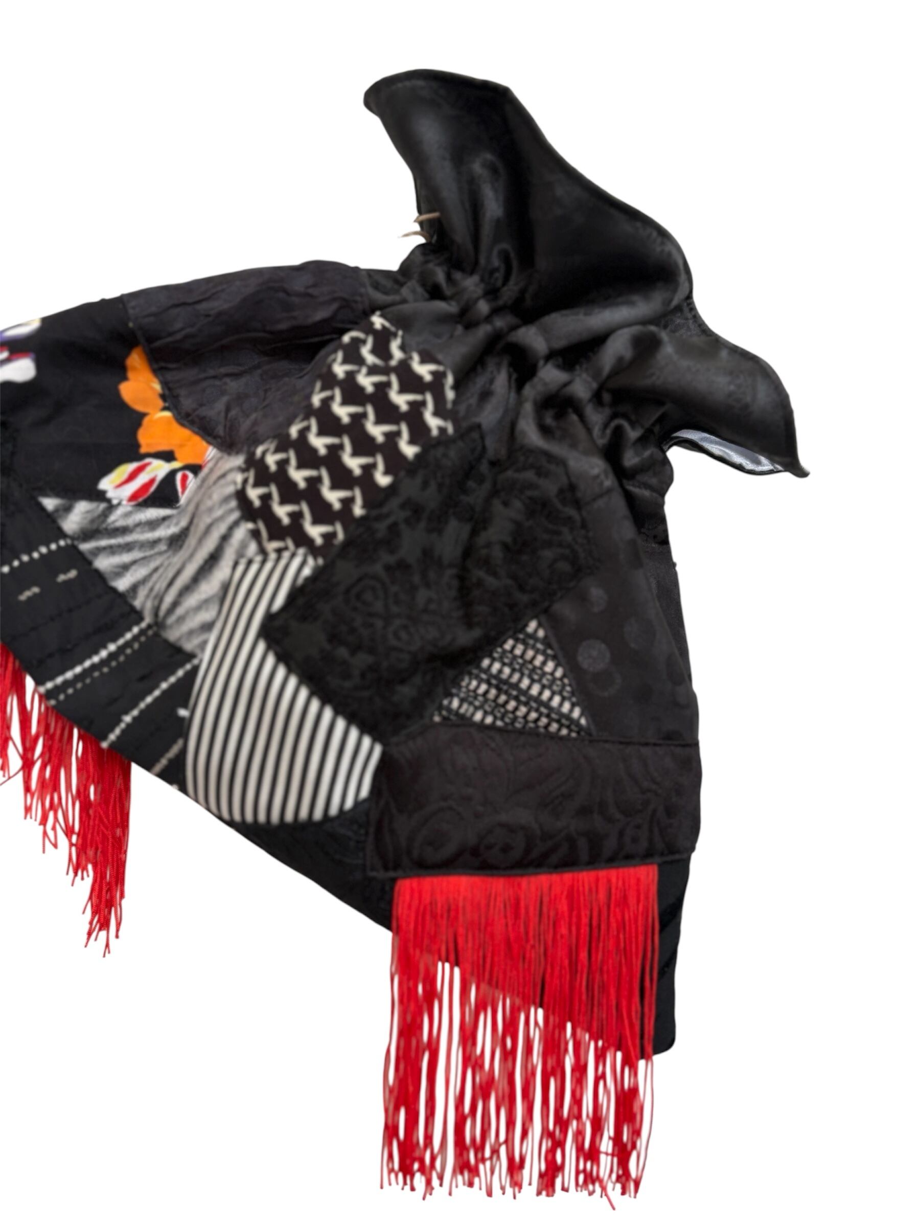 バッグの入り口のサテン生地 裏地、フリンジ、紐は新品を使用しています。